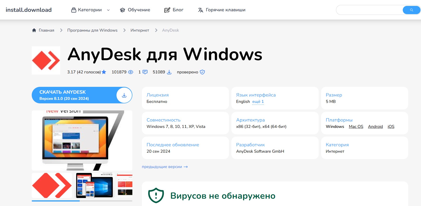 Убедитесь, что ваше устройство соответствует минимальным требованиям для работы программы. Вы можете скачать и установить AnyDesk для Windows по ссылке: https://install.download/ru/windows/anydesk.